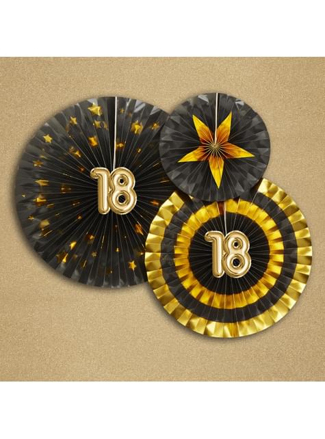Een set van 3 "18" geassorteerde decoratieve waaiers - Glitz & Glamour Black & Gold