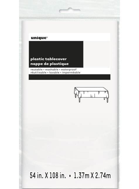 Houdt in: 1 Plastic tafelkleed van 137 cm x 274 cm