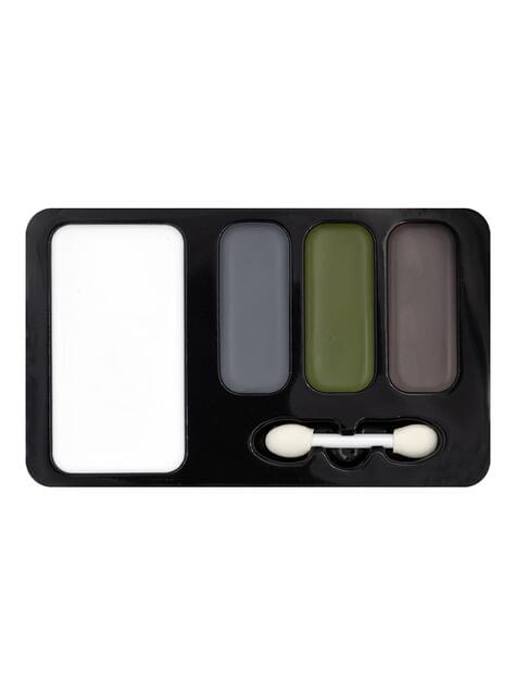 Het bevat een palet met vier kleuren (wit, zwart, groen en bruin) en een dubbele applicator die het mengen en schaduwen vergemakkelijkt. De zachte textuur past perfect op de huid en biedt een langdurige dekking die gemakkelijk te verwijderen is. Het ontwerp van de doos, met een camouflage-stijl, maakt de ervaring compleet voor degenen die tot het laatste detail van hun militaire karakterisering zorgen.