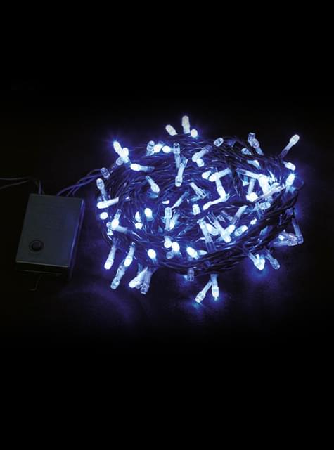 Houdt in: Lichtsnoer van 6.5 m met 100 blauwe LED lampjes en 8-functie controller. Met 220V stekker en laagspannings transformator (12 / 24V).