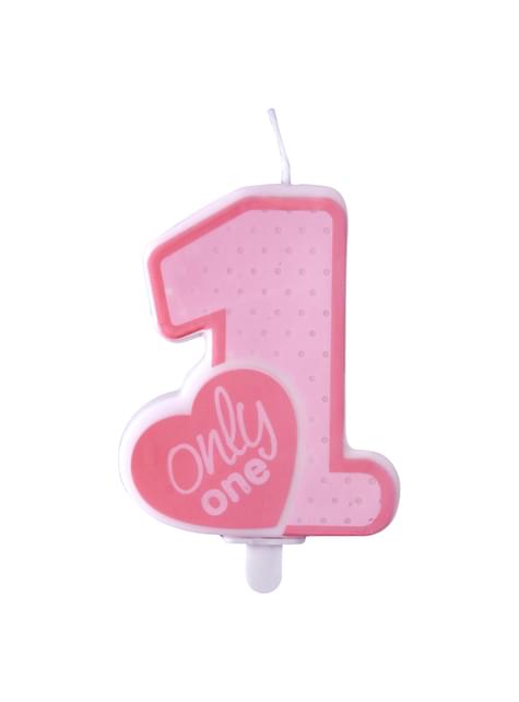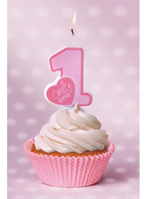 Roze "Only One" verjaardagskaars - Roze 1ste Verjaardag