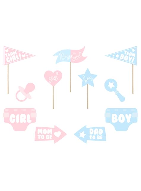 11 geassorteerde Baby Shower fotohokje accessoires, blauw & roze - Gender Reveal Feest