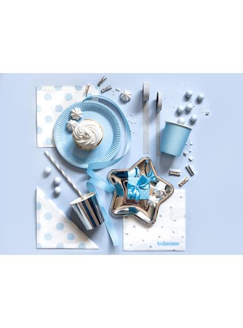 20 "1st Birthday" witte papieren servetten met zilveren sterren prin (33x33 cm) - Blauwe 1ste Verjaardag