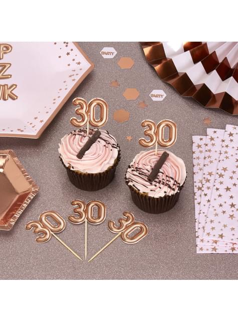 Set van 20 decoratieve rose gouden "30" tandenstokers - Glitter & Glamour Roze & Rosé Goud