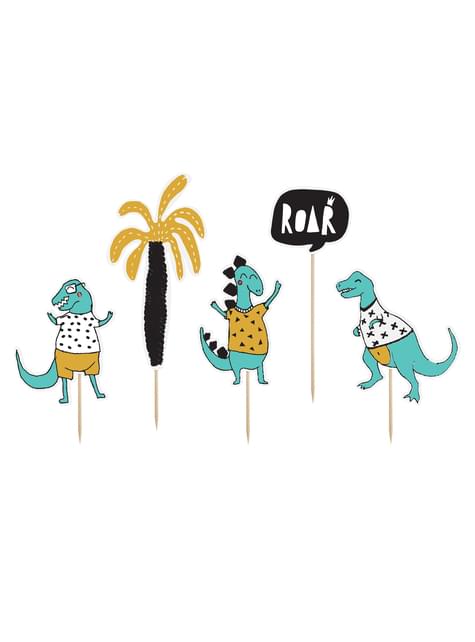 Set van 5 diverse dinosaurus taart toppers - Dino Feest