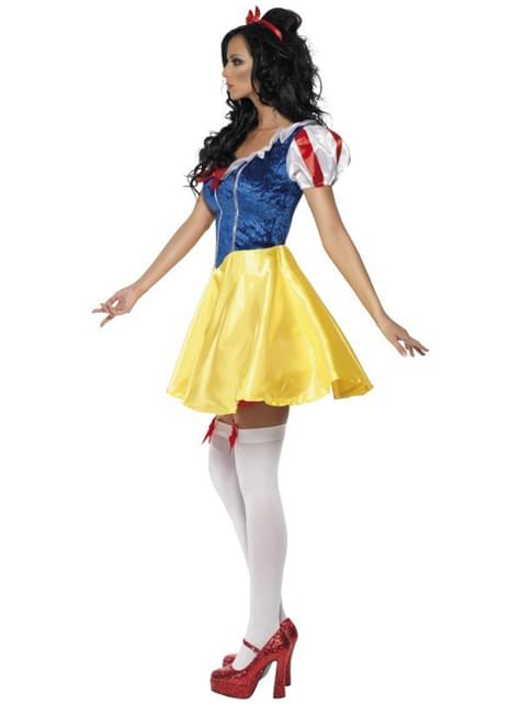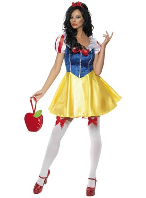 Verleidelijk als een appel is dit kostuum van een sprookjesfee. De jurk is gebaseerd op een sneeuwwitje kostuum en heeft de kenmerkende kleuren. Deze sneeuwwitje jurk is leuk voor Carnaval of voor Halloween, of zelfs voor een Disney prinsessen themafeest. Maak de outfit af met leuke details zoals een appel (het tasje is niet inbegrepen bij de jurk), de lange kousen met strik en de pruik (tevens niet inbegrepen). Ideaal als u op zoek bent naar een iets sexier of uitdagender outfit. Tevens is dit Sneeuwwitje kostuum perfect voor een vrijgezellenfeest!