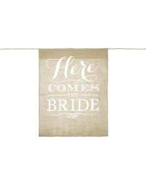 "Here Comes The Bride" jute bloemenmeisje slinger